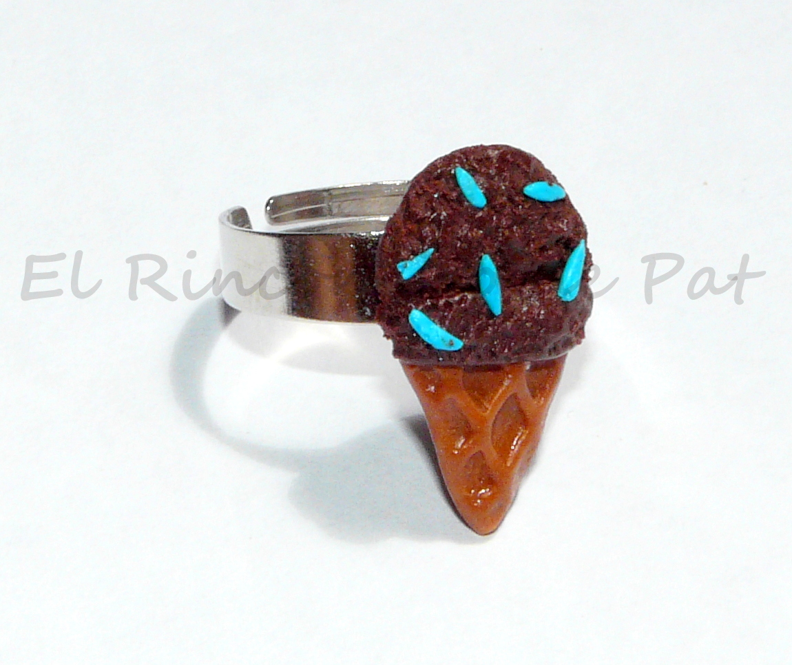 Más o menos hace juego con el helado de colgante con ojos. Todo de fimo menos el soporte del anillo que es de metal.